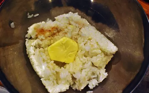 2.温かいご飯にバターをいれ余熱で溶かし、よく混ぜる。