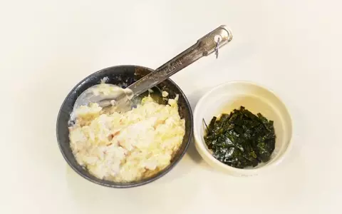 3. 行程1の玉葱とツナ、マヨネーズを混ぜます。マスタードはお好みで加えて下さい。海苔は適当にキッチンバサミで刻んでおきます。
