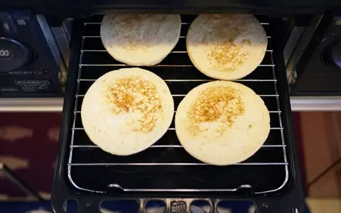4. パンの両面をかるく焼きます。ふわふわ食感が好みであれば焼かなくてもOK。(※イングリッシュマフィンの場合はかるく焼いて下さい)