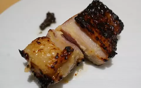 もも肉の西京味噌焼にカンボジアの生胡椒を添えて。味噌の風味を纏ったジューシーなもも肉は、香ばしさがアップし、肉汁と味噌と生胡椒が絶妙にマッチしている、驚きの美味しさ。