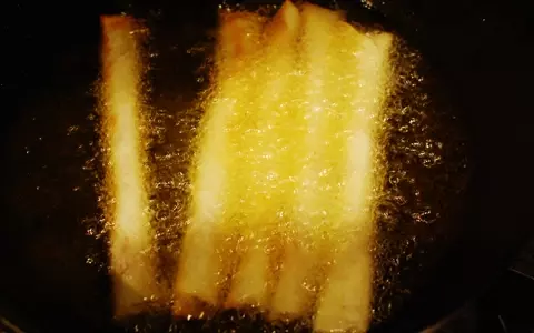 6.中温の油で狐色になるまで(約3~4分)揚げる。