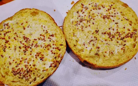 4.バンズの切り口に☆を混ぜ合わせたものをぬる。