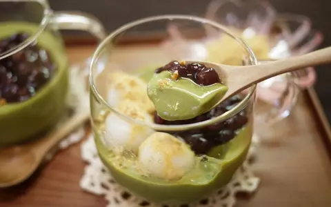 ぷるんとした抹茶プリンに餡子と白玉の味と食感がよく合います。ダイエット中でカロリーが気になる人も是非一度お試しあれ。