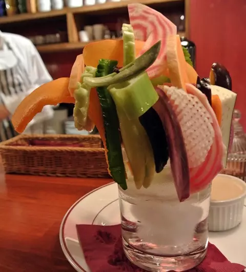 コースにも含まれるバーニャカウダは、なかなかその魅力を十分に伝えることができない、カメラ泣かせの立体的なビジュアル。名前を聞いたこともないような野菜ばかりがパフェのように盛り付けられてくる。