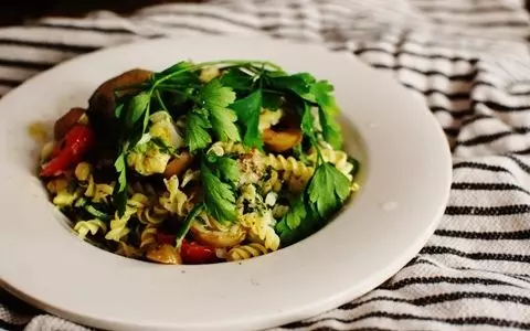 6.皿に盛り、仕上げに黒胡椒、オリーブオイルをふり、中央にイタリアンパセリを飾って完成!