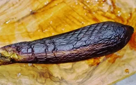 1.ナスは皮付きのままオーブントースターなどで真っ黒になるまで焼く。
