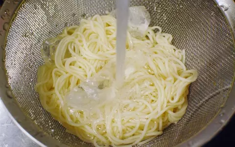 作り方1.ひやむぎは、袋に指定されている表示時間通りに茹でる。茹でたらザルにあけ、流水でながして粗熱が取れたら、氷水でしめる。