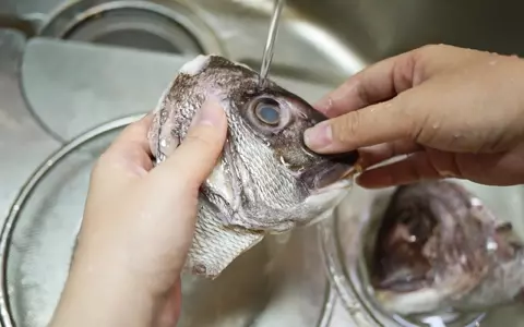 4. 鍋に多めの熱湯を沸かし、鯛を1~2秒程くぐらせた後、手早く冷水にとります。流水をやさしく当てながら、表面のぬめりや鱗を丁寧に取り除きます。鱗を丁寧に取ると後々食べやすくなるため、小さい鱗も丁寧に取り除くのがポイント。終わったらペーパーで水気をとり、塩胡椒を両面にしっかりとふります。