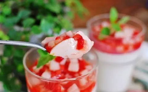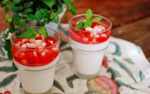7.冷やし固まった6の上に5をお好み量のせ、あればミントを飾って完成!