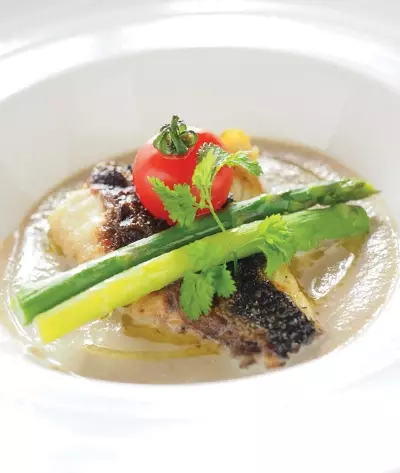 本日鮮魚のソテー ごぼうのポタージュ仕立て