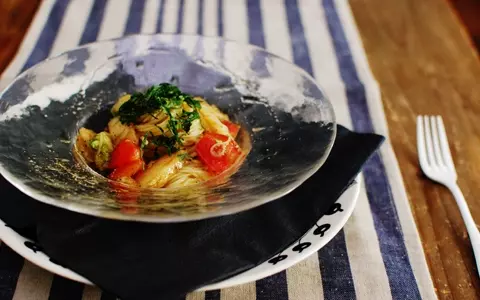 驚き桃の木の絶品レシピ! トマトと桃の冷製カッペリーニ