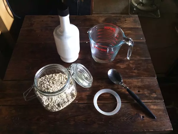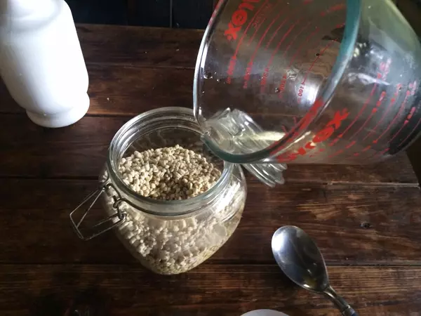 まず、麦麹150gに、ぬるま湯80ccを加えて30分ほど麦麹に水分を吸わせます。(麦麹の乾燥具合により水分を加減しても)