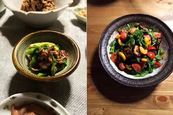 納豆に入れたり、冷や奴、サラダや和えもの、肉や魚、野菜のソテーや蒸しものにのせるのもオススメ。醤油で発酵熟成されているので、うまみの相乗効果で味わいが濃厚になっています。麦のぷちぷち感も楽しく、このままおつまみとしても美味しくいただけます。(写真右のサラダは「醤油麦麹」をそのまま和えただけです)