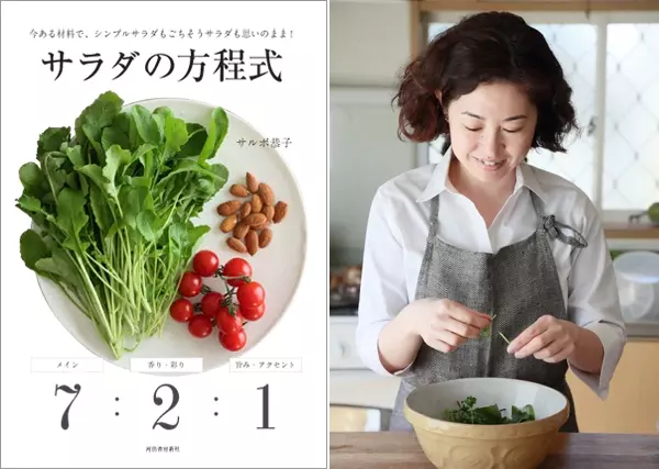 「季節の野菜を使ったサラダは毎日いただきたいもの。けれど、自己流で作るといつも同じようなサラダになってしまったり、本を見て美味しそうなレシピを見つけてもこの食材がない、いま家にあるもので作りたい、と悩んでしまうことも。そんなときに覚えておくと便利なのが、“サラダの方程式”です」とサルボ恭子さん。「サラダ作りは、「メイン」、「香り・彩り」、「旨み・アクセント」の三部構成。ひとつのお皿を10として、この割合を7:2:1の割合で組み合わせれば、必ず成功します。このルールに合わせて「いま家にあるもの」「今日使いたいもの」から自由に発想するとよいでしょう」