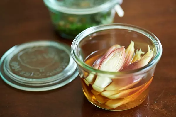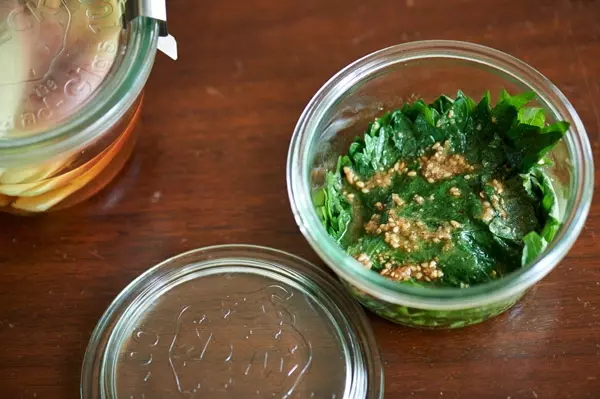 ミョウガは甘酢漬け、大葉はゴマ油漬けに