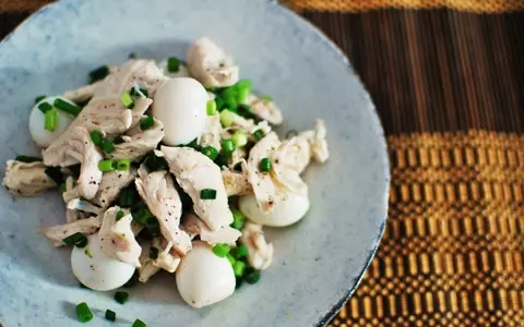 真夏のサッパリおかず「ささみと半熟うずらの塩レモン風味」