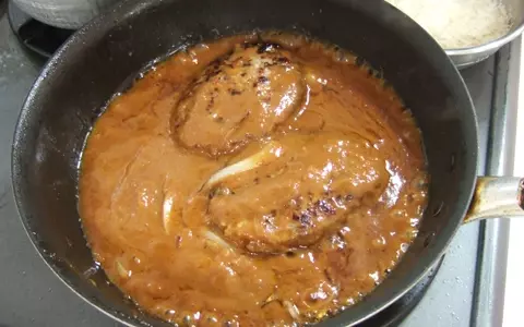 最初にハンバーグとサラダ作りに取りかかりましたが、ハンバーグは手でひき肉をこねる必要がなく、焼けたらソースをかけて煮込むだけ。蓋をしないで煮込めるのも、洗い物が減るうれしいポイントです。