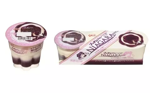 まるでナイアガラの滝!? たっぷりグレープソースのかかったレアチーズ風プリンとは