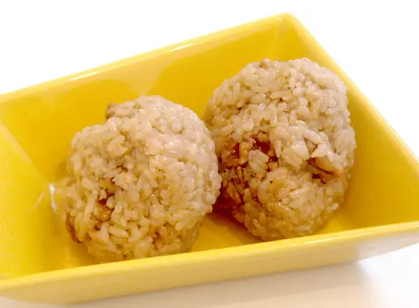 このレシピが紹介されている本『石巻ボランティアハウスの橋本ごはん』の「クルミおこわ」の写真と同じようにおにぎり状にまるめて。モチモチのおこわに、クルミがごろごろ入っていて何ともいえない食感!クルミがアクセントになり、とても美味しかったです。クルミおこわは、材料を混ぜて普通に炊くだけ、という手軽さもポイント。ぜひみなさんも、こちらの本を参考に作ってみてはいかがでしょうか。