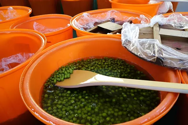 東洋オリーブのオリーブ新漬け用の新工場。今年新たに完成し、20トンまで漬けこめるようになったそう