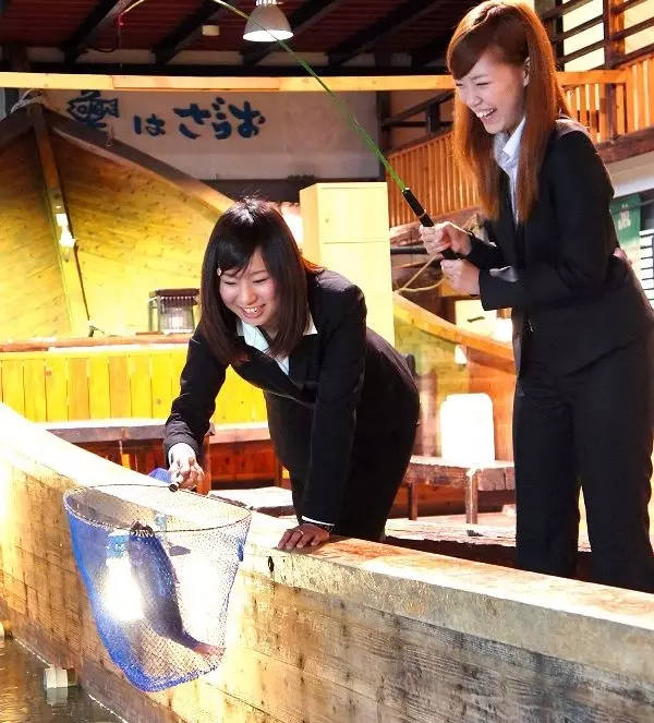 食べたい魚の近くに釣り糸を垂らして、獲物を狙いましょう。チケット1枚の獲物を狙うもよし、同僚や友だちとチケットを共有して高級魚を狙ってもOK。狙った魚以外のものが釣れてもリリースできないという、ガチさがまた盛り上がる!