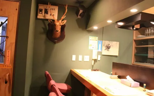 テレビ番組や雑誌・漫画などにとりあげられる名店で、料理に使用する肉は、狩猟歴50年のキャリアを持つマスターが自ら獲ってきたものだとか。店内にはシカの剥製が飾られてあったり、箸置きがライフル弾だったりと、ちょっとした遊び心が散りばめられています。カウンター席のみなので、女性一人でも気兼ねせず入ることができますよ。