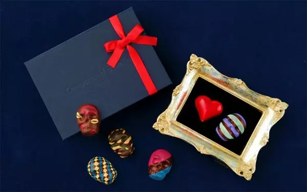 アーティスティックに仕上がったトリュフのセット。迷彩柄にモザイク柄、そして大胆なキスマーク…! コンパーテスを象徴するモチーフ、スカル型をキャンパスに描かれたスペシャルデザインは、バレンタイン限定のインパクトあるお洒落なチョコレート。