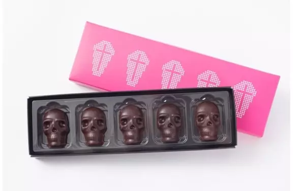 5つのスカル型のチョコレートは、それぞれカカオとフレーバーのバランスにこだわった全て異なる味わい。この中にひとつだけ「激辛」のデンジャーが入っているから、会社に持っていけば盛り上がりそう。