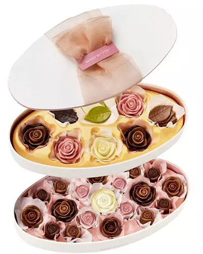 口どけなめらかなアロマの香り高い、フランス・ヴェイス社のクーベルチュールで美しい薔薇を表現した“メサージュ・ド・ローズ(薔薇のメッセージ)”。日本橋三越本店限定の華やかな2段ボックス 1箱〈2段:36粒入〉10,000円(税込 10,800円)*日本橋三越本店限定/メサージュ・ド・ローズ