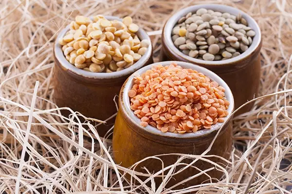 レンズ豆には、赤、黒、茶、緑などがさまざまな種類があります。グリーンや茶のレンズ豆は硬く、柔らかくなるまで煮るのには約30〜40分かかりますが、赤や黄色は皮をむいてから流通することが多いため、煮えるまでの時間も約20〜30分と短くてすみます。