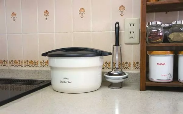 保温調理鍋は最近人気のサーモスを使いました。沸騰させてふたをして保温すると、次の日でも70度くらいをキープできる優れものです。大根さえ火が通っていれば、ほかの材料は80度くらいで十分熱くなり、各素材からいいダシが出てくるので、直火でコトコト煮続けなくてもおいしくなります。