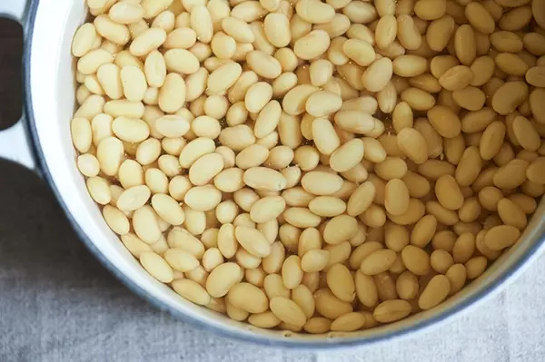 ひと晩つけると、写真のように大豆がムクムクと育ったかのように膨らみます。