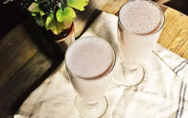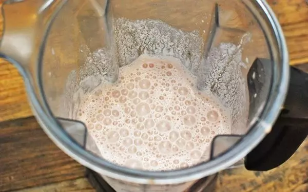 4.いちごシェイクを作る。一度洗ったミキサーにナップミルクを2カップ、◎を入れて滑らかになるまで撹拌する。