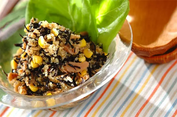 「切干しナポリタン」のレシピはこちら→http://erecipe.woman.excite.co.jp/detail/ad28fea00214de8019b4bc0a9cc02e2b.html昔ながらの食材であるひじきも、スーパーフード「キヌア」を合わせたレシピ「キヌアとヒジキのヘルシーサラダ」なら、ぐんと今年らしい雰囲気に。キヌアはタンパク質や鉄分、カルシウムを豊富に含み、プチプチした食感が食欲を誘います。キヌアとヒジキのヘルシーサラダ