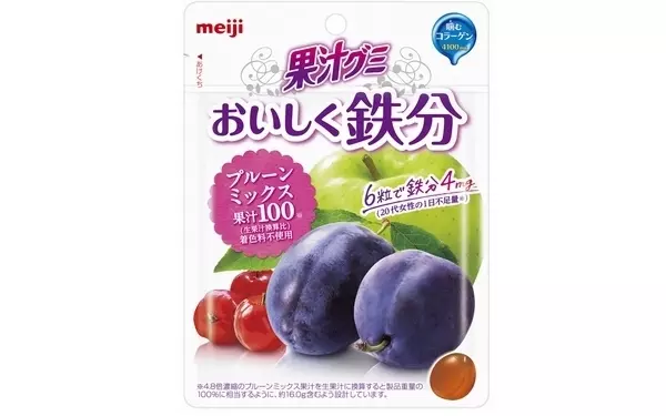 ■果汁グミ おいしく鉄分プルーンミックス女子に注目度の高い栄養素と言えば、鉄分。貧血や立ちくらみなど、鉄分不足を感じている女子は多いのではないでしょうか。