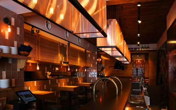 神田店はカジュアル感を意識し、カウンター席を大きく設けてあるのが特徴。おひとり様でも入りやすいのがうれしいですね。中央にオープンキッチンを配しライブ感も満載。