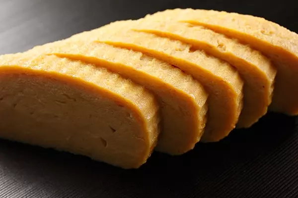 そしてお弁当の王様「玉子焼」。ふんわりと柔らかく、だしの効いた玉子焼。なんと当日の未明からその日に入れるものを焼いているとか。また今でも手焼きで焼いているそうです。