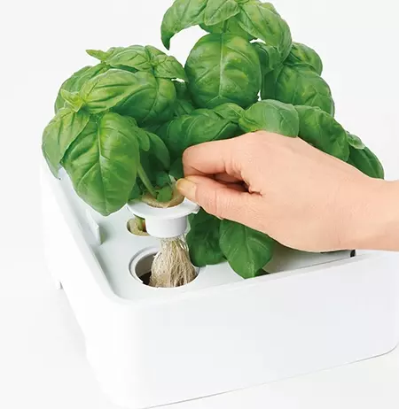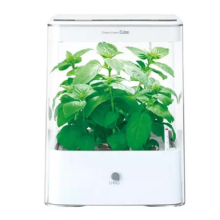 テーブルで野菜を育てて収穫!「グリーンファーム キューブ」ユーイング「グリーンファーム キューブ」は、コンパクトサイズの水耕栽培器。バジルなどのハーブや、ベビーリーフなどの野菜が手軽に育てられるので、テーブルで野菜を収穫して、そのままサラダなどの料理に使うことができます。
