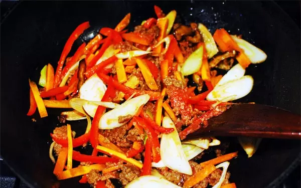 2.フライパンに1をいれ、中火で炒める。 3.肉の色が変わりかけたら、ごま油とにんじんを入れて炒める。 4.しいたけ、パプリカ、白ねぎをいれてさらに炒める。全体に薄く塩、黒胡椒を少々する。
