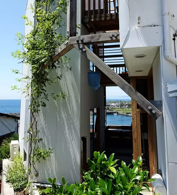 車の入ることができない漁村集落に建つ、もと漁師さんの住まいをリノベーション。1階はテラスと座敷のカフェスペースで、2階は住居です。