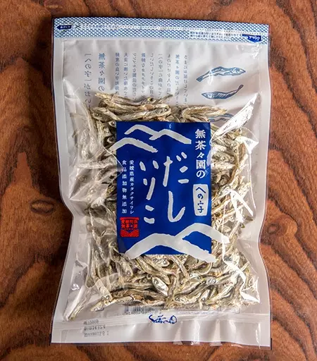 パッケージもシンプル。裏面にはおいしいだしのとりかた、だしをとった後のだしがらの利用法(オイルサーディンの作り方)が紹介されています。「だしいりこ」(200g)¥550