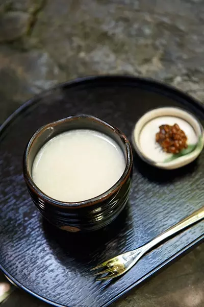 そして完全に暑さにバテてしまった時は、熱い甘酒で体調を整えるのもいいですね。自家製の久方味噌がそえられた甘酒をいただいていると、カラダがホッとするのがわかります。