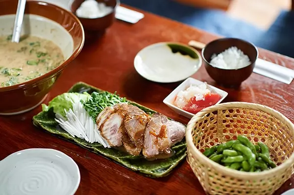 冷や汁の食べ方は、ごはんに少しかけてその部分を食べ、またかけて食べる、を繰り返すのが正解。一気にかけて食べると味が薄まってしまうからだそうです。「ごまを擦るのがちょっと手間ですが、自分で頑張って擦っただけの価値のある食べ物だと思います。これからの暑い夏におすすめですよ」。