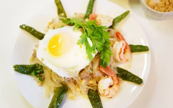 蓋無しで黄身がくっきり、途中で半分程蓋をした場合は上が少し半熟になります。焼けたらお好みで塩胡椒やナンプラーで味をつけて下さい。(目玉焼きは頂点より少しずらした位置に置き、反対側に海老や薬味を飾ると見栄えがアップします。)