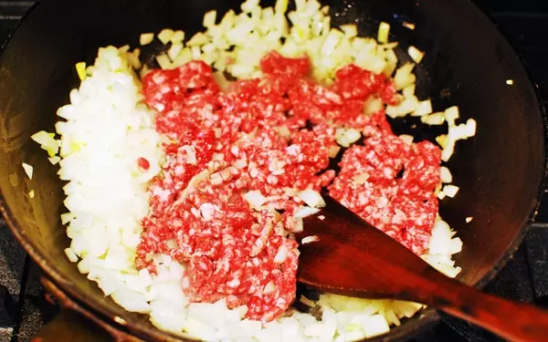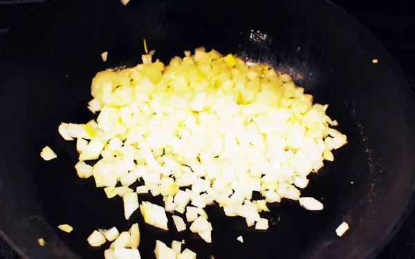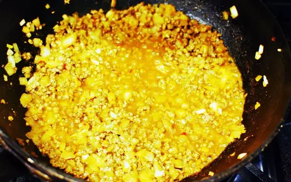 2.挽肉を入れさらに炒める。全体に塩と黒胡椒を少々する。