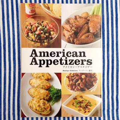 最後はアメリカ・フロリダ州在住のアンダーソン夏代さんによる、アメリカの食文化がよくわかるこの本。タイトルの“アペタイザー”とは、「主菜の前につまむ前菜や食前酒」のこと。ディップやナッツ、サラダ、カリフォルニアロールなどのお寿司だけではなく、メインにもなりそうなバッファロー・ウイングやチキン・フィンガーズなどの肉料理やフライ、パーティードリンクまで、お酒のお供にぴったりのメニューが幅広く紹介されています。