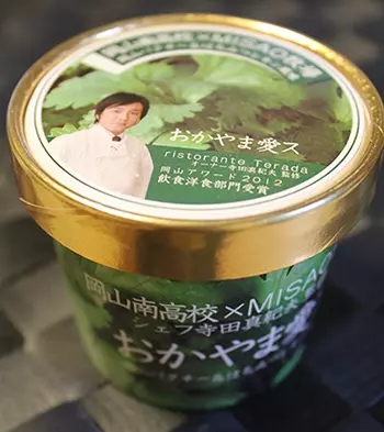 「岡パクチーム」と地元岡山南高校の生徒が商品開発。北区蕃山町のイタリア料理店のシェフのアドバイスを得て、完成させた。はちみつレモン風味でさっぱり味。¥300(税込)