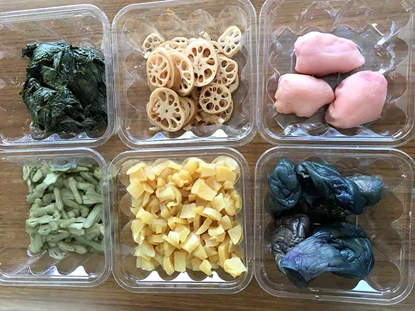 浜食さんの福神漬けに使用している原料。こちらもすべて塩だけで発酵させたもの。自然な色合いが美しい。