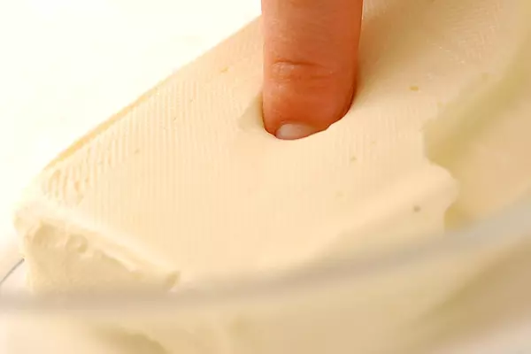・耐熱ボウルにクリームチーズを入れ、電子レンジで1分加熱する。指で押すと、ス~ッとチーズの中に入っていく位まで柔らかくする。