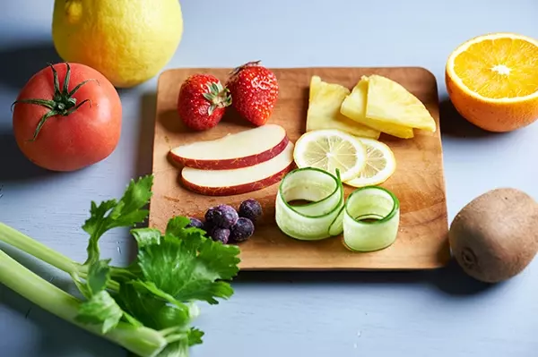 素材をカットして水を注ぐだけ!作り方はとても簡単。よく洗った果物や野菜、ハーブなどをカットして保存容器に入れ、素材がかぶるくらいのミネラルウォーターを注げば完成です。
